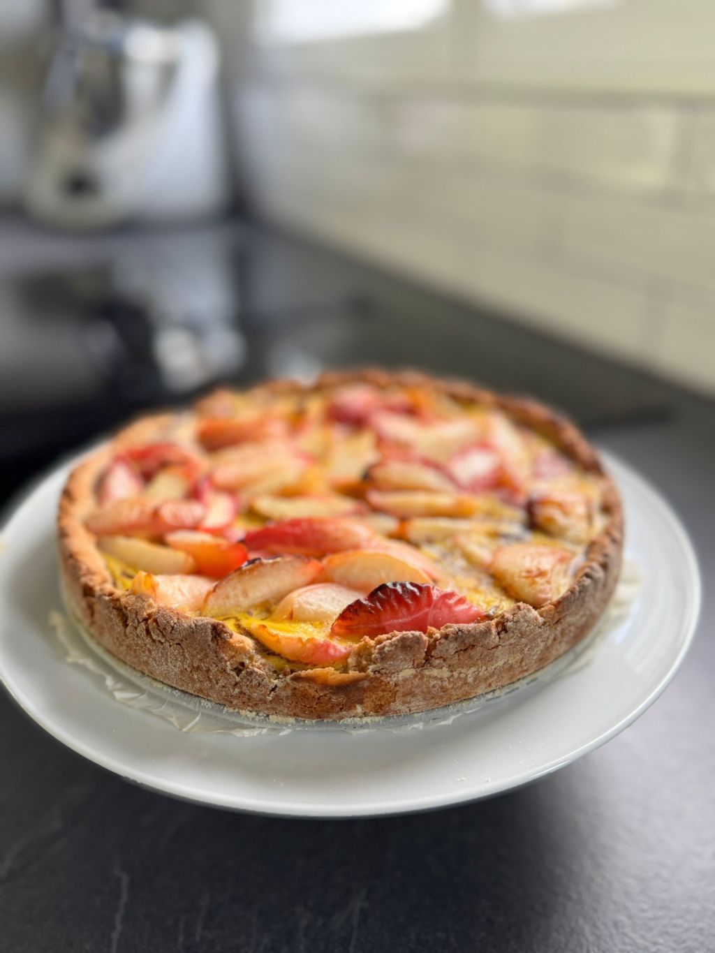 - Dispose tes pêches (pommes, etc…) sur ta pâte